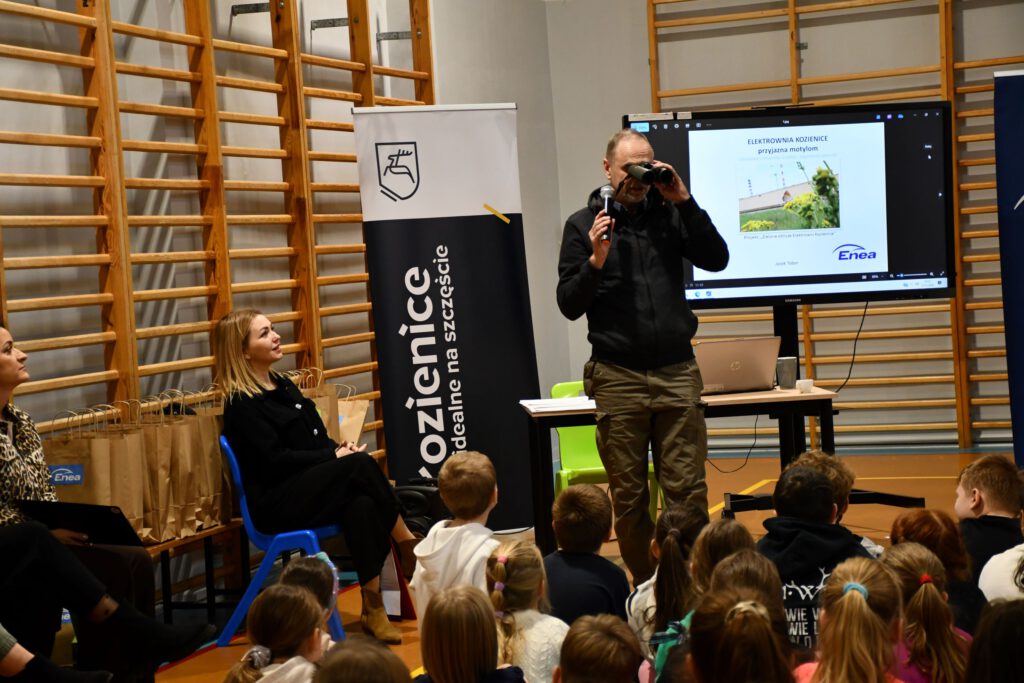 Podczas spotkania podsumowywującego projekt uczniowie wysłuchali ciekawej prezentacji na temat m.in. smogu, wykorzystania surowców wtórnych, czemu towarzyszyły ciekawe doświadczenia i eksperymenty wykonane w humorystyczny sposób przez uczniów i nauczycieli. Dzieci wysłuchały prelekcji przyrodnika Jacka Tabora na temat motyli występujących w sąsiedztwie Enei Wytwarzanie oraz ich istotnej roli w ekosystemach. Wolontariusze Enei Wytwarzanie przeprowadzili prelekcję w ramach programu „Oszczędzaj energię z Krzysiem Elektrykiem”, która wpisuje się w cele całego projektu. Około 100 uczniów utrwalało wiedzę na temat wytwarzania, oszczędzania energii elektrycznej oraz zasad bezpieczeństwa. Po projekcji filmu edukacyjnego dzieci chętnie i z zaangażowaniem uczestniczyły w dyskusji, która potwierdziła, że najmłodsi mają świadomość, że każdy z nas jest odpowiedzialny za zużycie energii a jej oszczędzanie przynosi wymierne korzyści.