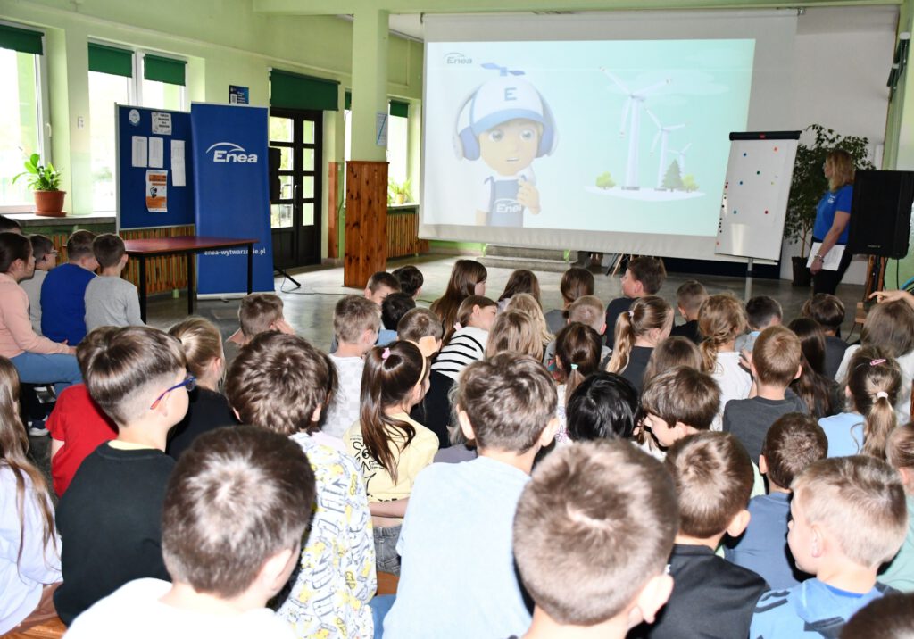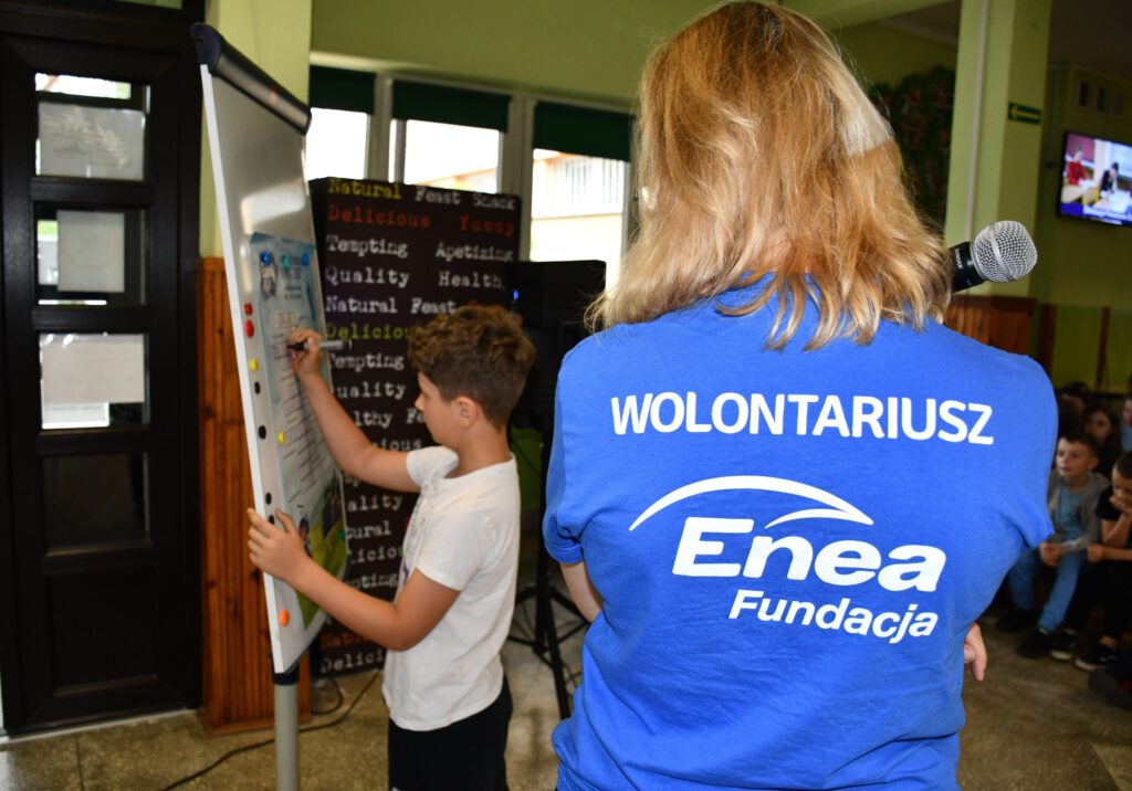 Udział w spotkaniu wzięli również wolontariusze Enei Wytwarzanie na czele z Dorotą Jarosz-Woźny, która jako koordynator wolontariatu przeprowadziła warsztaty edukacyjne w tematyce prądu. Lekcję poprowadzono na podstawie projektu realizowanego w całej Grupie Enea pn. „Oszczędzaj energię z Krzysiem Elektrykiem”. W warsztatach udział wzięło prawie 100 uczniów klas 1-3, którzy na początku obejrzeli animowany film edukacyjny, podczas którego dowiedzieli się między innymi jakie są rodzaje elektrowni, jak wygląda proces produkcji energii elektrycznej i jak tą energię bezpiecznie i racjonalnie wykorzystywać. Tematyka wzbudziła w dzieciach wielkie zainteresowanie, bardzo chętnie odpowiadali na pytania i dzielili się swoją wiedzą. Punktem kulminacyjnym spotkania było wspólne rozwiązywanie tematycznej krzyżówki. Aktywność i zaangażowanie uczestników prelekcji zostały nagrodzone drobnymi upominkami oraz wydawnictwami o charakterze przyrodniczym.