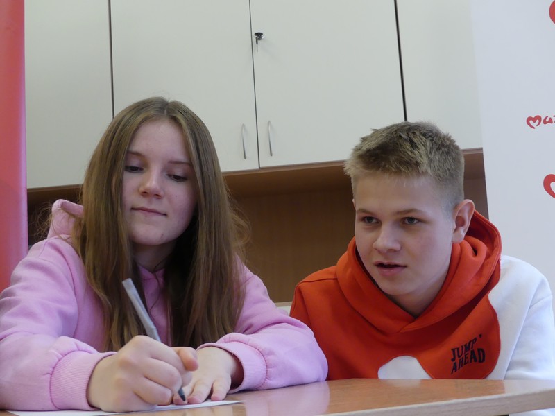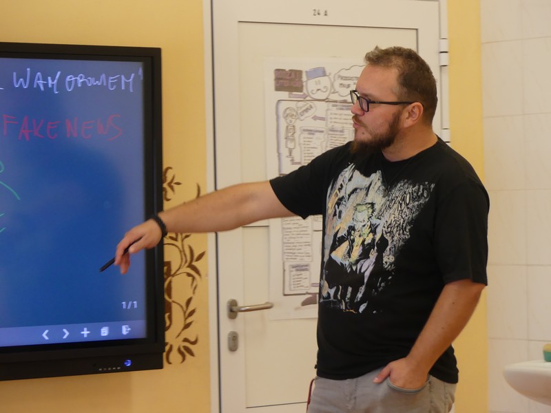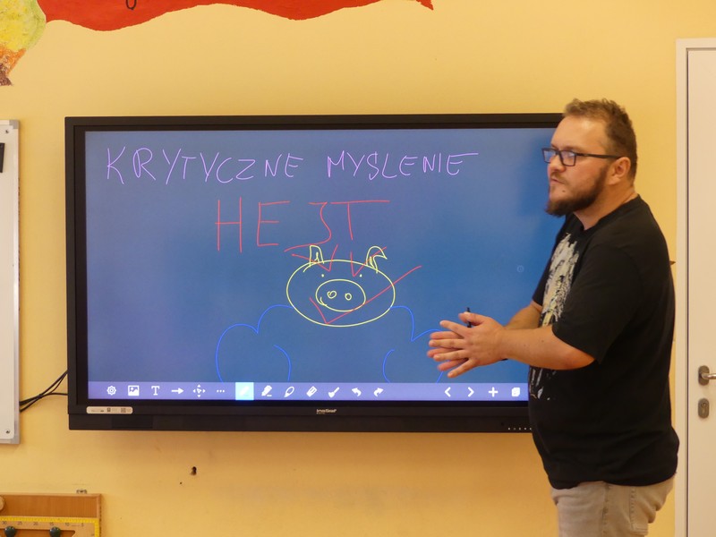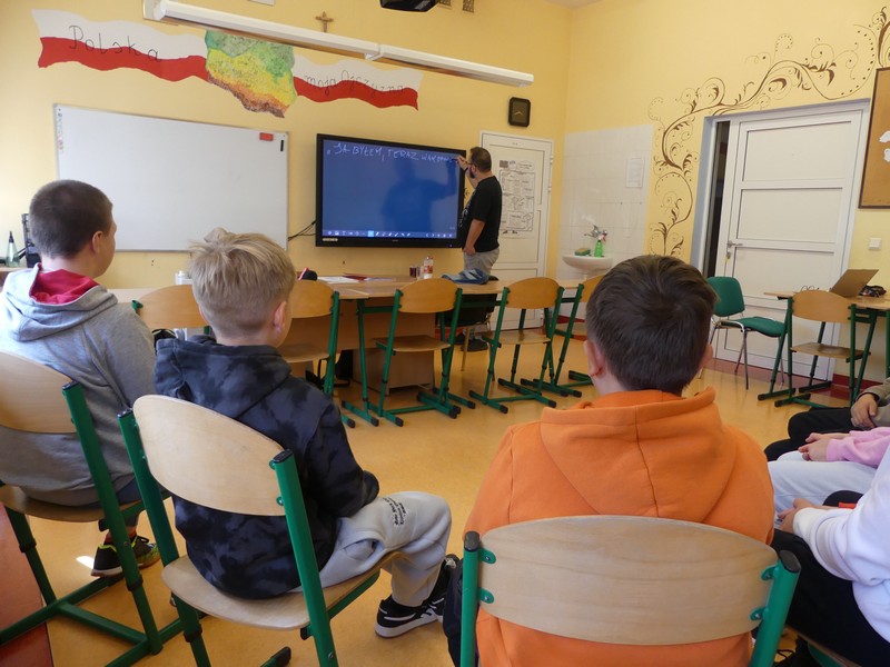 W warsztatach udział wzięli uczniowie z klasy siódmej, którzy z zaciekawieniem słuchali jak wygląda praca dziennikarza, a także poznali pojęcia takie jak krytyczne myślenie czy rzetelność dziennikarska: