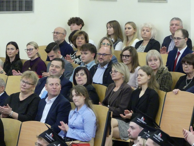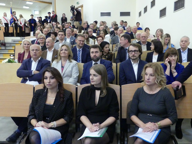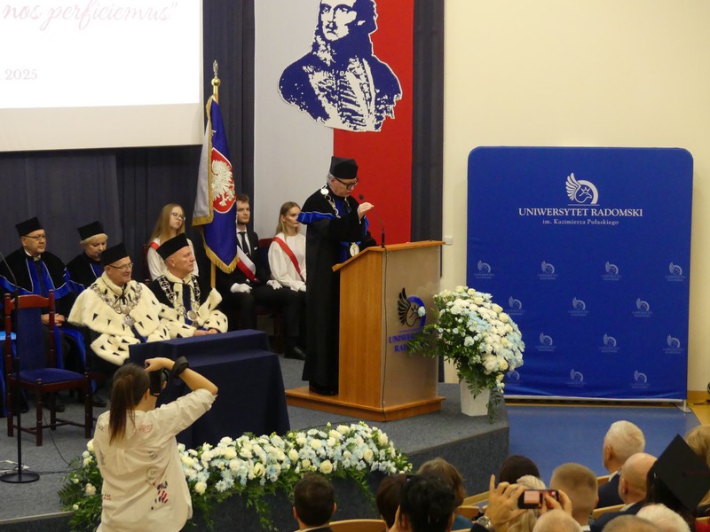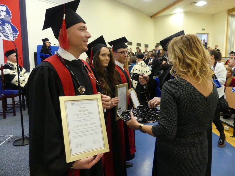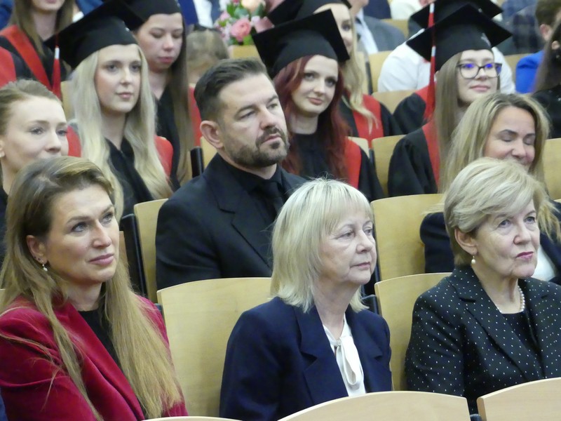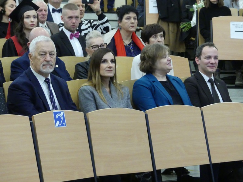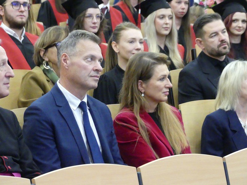 Bardzo dziękuję za te wysiłki, które Pan wkłada w to, żeby ta uczelnia regionalna i która mogłaby się zmagać z wieloma problemami, bo niedaleko Warszawa, niedaleko Kielce niedaleko Lublin, radzi sobie na tej mapie uczelni naprawdę rewelacyjnie. Jest to bardzo, bardzo istotne i właśnie dzięki całej społeczności akademickiej i panu Rektorowi udaje się z tej uczelni zrobić naprawdę perełkę akademicką naszego regionu. Uczelnia służy swojemu regionowi. To tutaj kształceni są przyszli lekarze, którzy będą tutaj pracować, nauczyciele, urzędnicy, wszyscy ci, którzy widzą swoją przyszłość właśnie w tym, żeby dokładać się do świetnego rozwoju tej części Mazowsza. Ministerstwo Nauki i Szkolnictwa Wyższego stara się wspierać na tyle, na ile może właśnie te uczelnie regionalne. Uniwersytet Radomski otrzymał wsparcie około 50 milionów na inicjatywę związaną właśnie z rozbudową Centrum Symulacji Medycznych, ale także na rozbudowę Bazy Akademikowej, co jest bardzo ważne, żeby przeciągnąć osoby z trochę dalszych regionów. Więc bardzo się cieszę, że mogę wziąć udział w trzecim w trzeciej graduacji rocznika lekarskiego, ale co jest szalenie ważne, z jeszcze lepszym wynikiem.