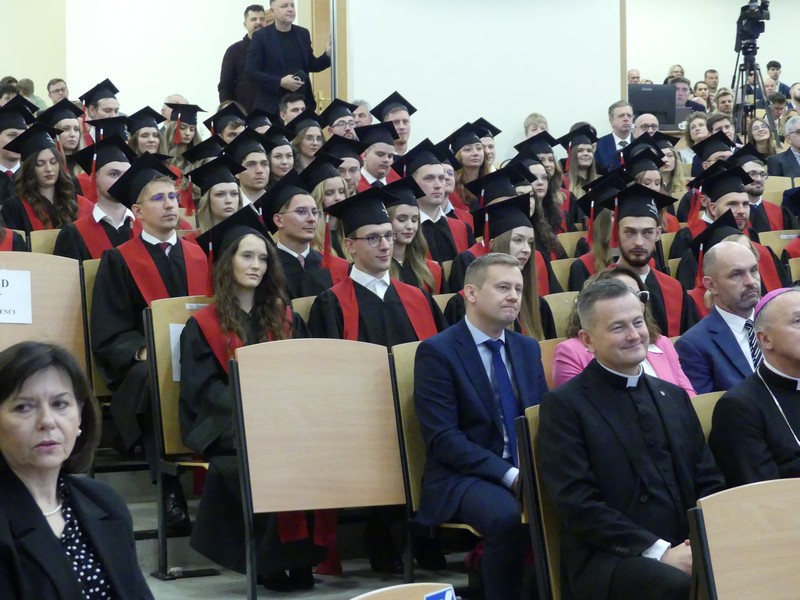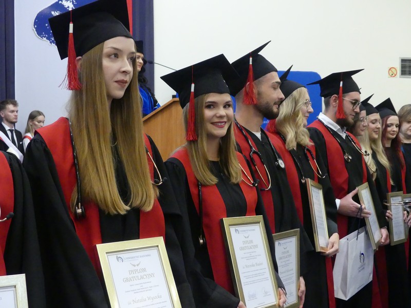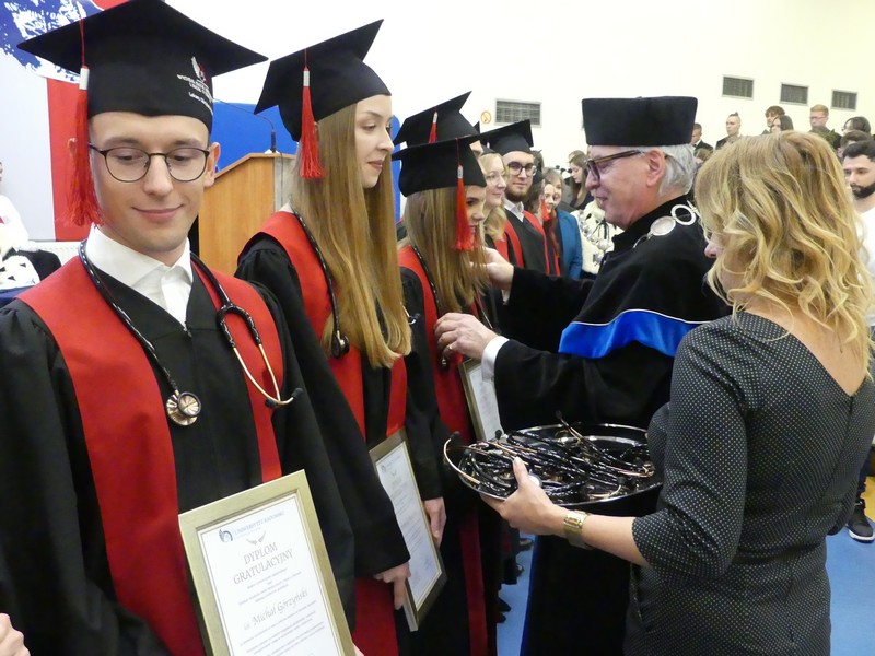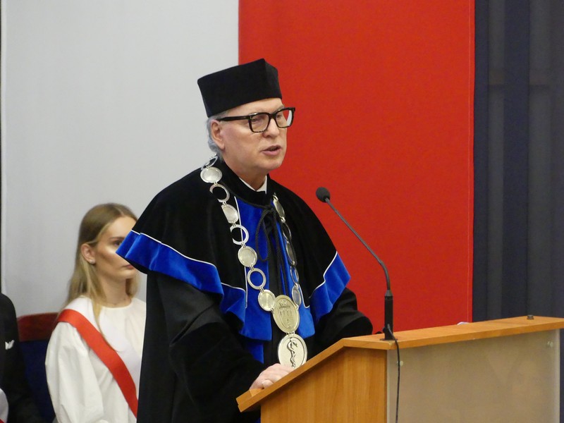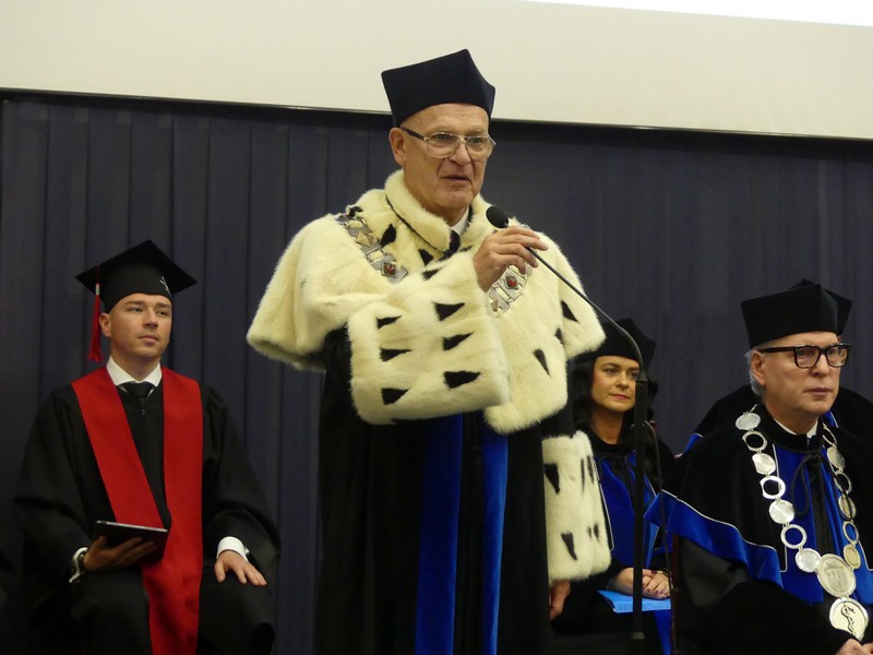 To jest trzeci rocznik lekarzy, którzy opuszczają mury naszej Alma Mater. Większość z nich już zdała lekarski egzamin krajowy. W związku z powyższym są już no pełnymi lekarzami. Czekają teraz specjalizację. Poprzednie dwa roczniki, które opuściły mur naszej uczelni zajęły w lekarskim egzaminie krajowym w poszczególnych latach ósme miejsce w rankingu ogólnopolskim, wyprzedzając również te starsze od nas uczelnie ze starszymi kierunkami, a w tym roku to jest szóste miejsce, z czego jako Rektor jestem bardzo dumny. Mamy kadrę, mamy laboratoria, rozbudowujemy to wszystko dzięki wsparciu Ministerstwa Nauki i Szkolnictwa Wyższego. Otrzymaliśmy środki na budowę Centrum Symulacji Medycznych, które jest wymagane prawem, żeby kształcić studentów, bo część zajęć się będzie tam właśnie odbywała. Mamy, mamy środki na rozbudowę laboratoriów. Zakładałem, że przyjmiemy w tym roku 2300 osób na wszystkie kierunki na pierwszy rok studiów. Okazało się że zamknęliśmy to liczbą 2880. I to jest najwyższy wynik jeśli chodzi o ostatnie 12 lat życia naszego uniwersytetu.