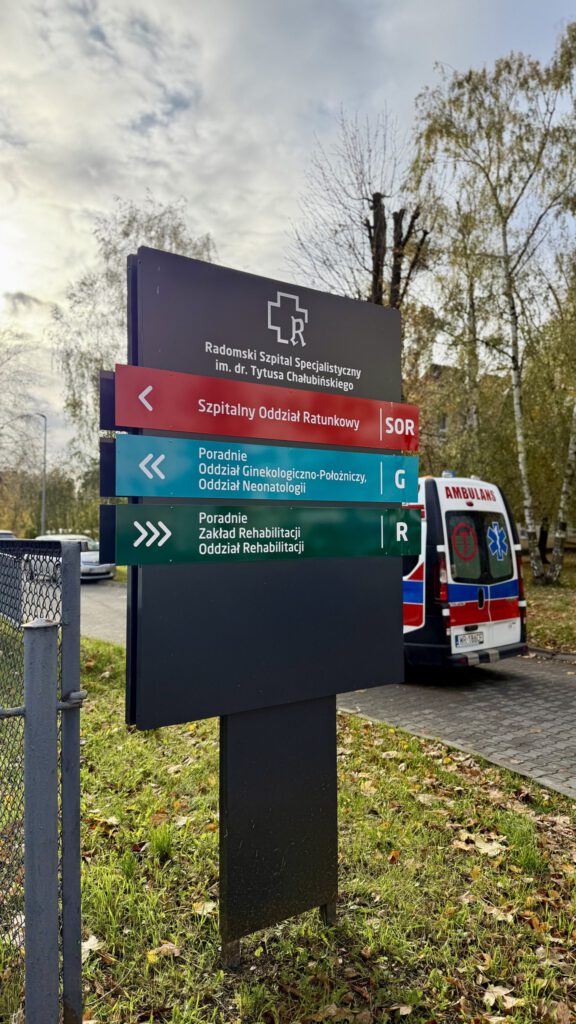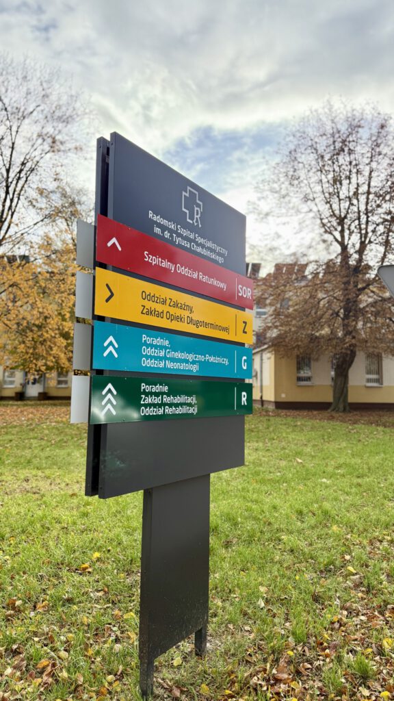 W Radomskim Szpitalu Specjalistycznym wprowadzono nowe rozwiązania, które mają ułatwić pacjentom i ich bliskim poruszanie się po terenie placówki. Na terenie szpitala pojawiły się czytelne oznaczenia budynków, nowe tablice informacyjne, a także podświetlane pylony, dzięki którym łatwiej trafić we właściwe miejsce