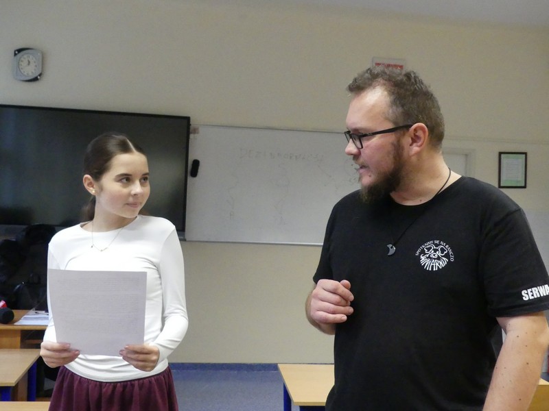 Pod okiem dziennikarzy Radia Radom młodzież poznawała mechanizmy powstawania fake newsów, sposoby weryfikowania informacji oraz rolę, jaką w tym wszystkim odgrywa odpowiedzialność za słowo. Czy takie warsztaty są potrzebne w szkołach podstawowych mówi Lena z klasy 7a: