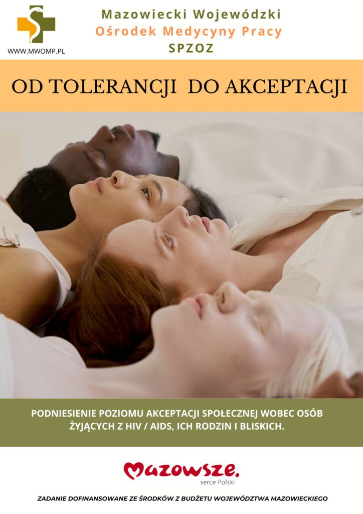OD TOLERANCJI DO AKCEPTACJI jest jednym z kilku projektów realizowanych w MWOMP oddział Radom. Mazowiecki Wojewódzki Ośrodek Medycyny Pracy jest ośrodkiem realizującym szeroki zakres świadczeń zdrowotnych takich jak: orzekanie chorób zawodowych, badania profilaktyczne pracowników, uczniów i studentów, badania kierowców lekarski i psychologiczne i szereg innych z zakresu medycyny pracy a także finansowych przez NFZ. MWOMP od wielu lat podejmuje również działania profilaktyczne z różnych obszarów medycyny i psychologii, mające służyć poprawie zdrowia.
