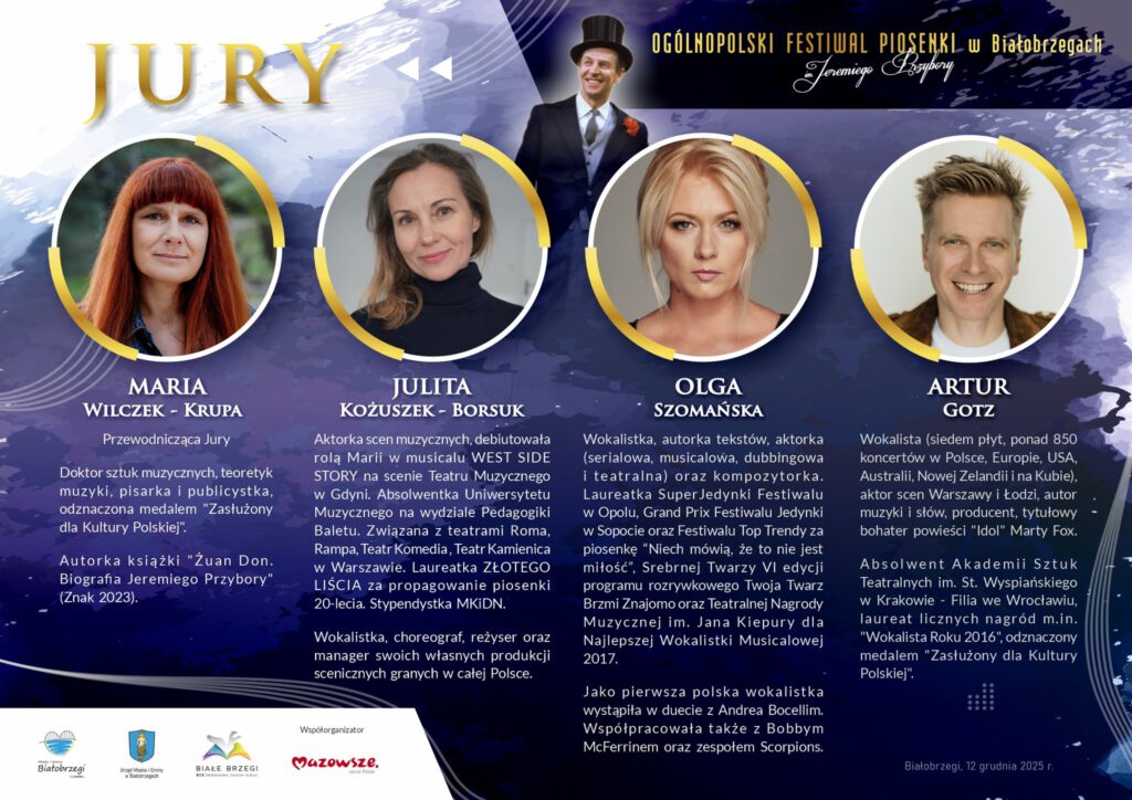 – Maria Wilczek-Krupa – przewodnicząca jury, teoretyk muzyki i autorka biografii „Żuan Don. Jeremi Przybora”,