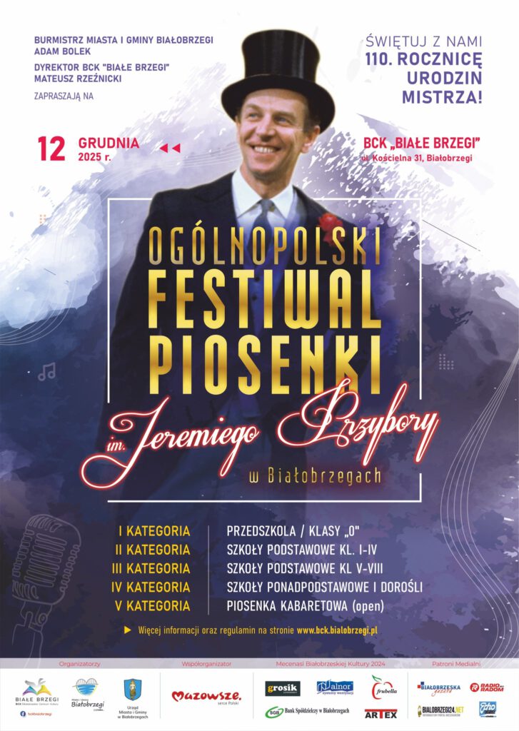 W Białobrzegach trwa odliczanie do wyjątkowego muzycznego święta. W najbliższy piątek, 12 grudnia, odbędzie się III Ogólnopolski Festiwal Piosenki imienia Jeremiego Przybory