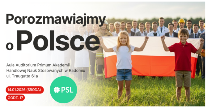 PSL zaprasza na otwarte spotkanie dla mieszkańców Radomia i regionu „Porozmawiajmy o Polsce”