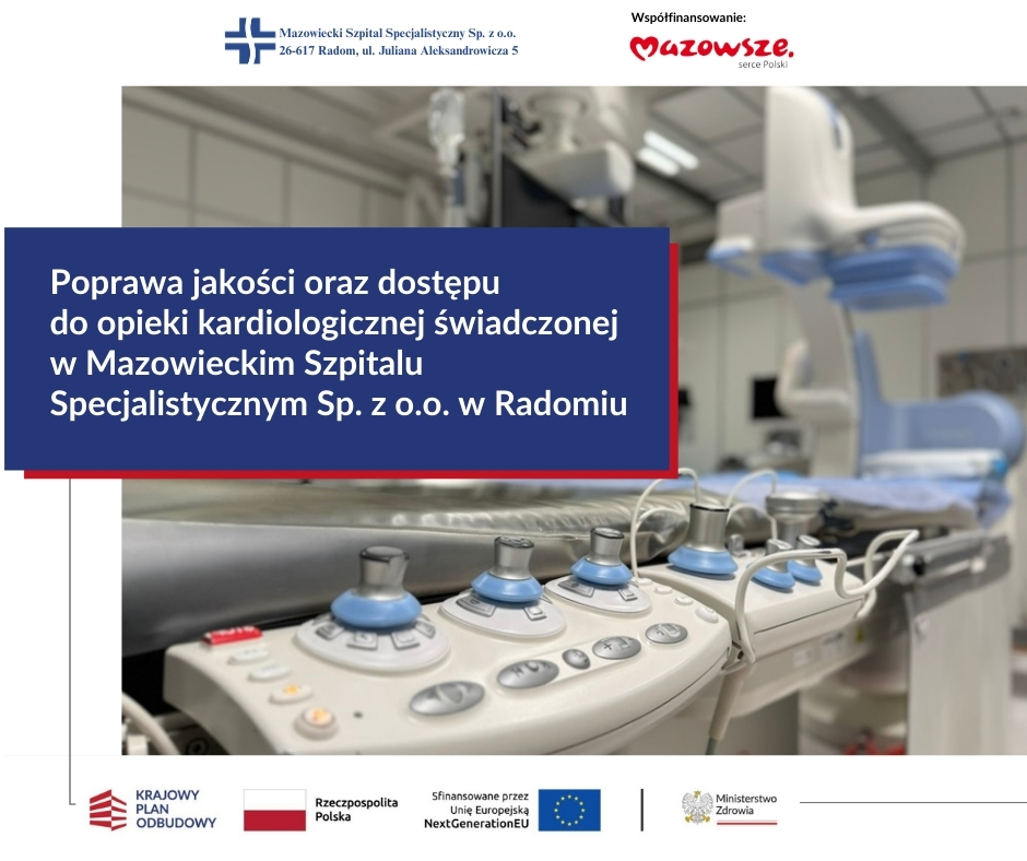 Dzięki dofinansowaniu placówka zrealizuje projekt pod nazwą „Poprawa jakości oraz dostępu do opieki kardiologicznej świadczonej w Mazowieckim Szpitalu Specjalistycznym w Radomiu”.