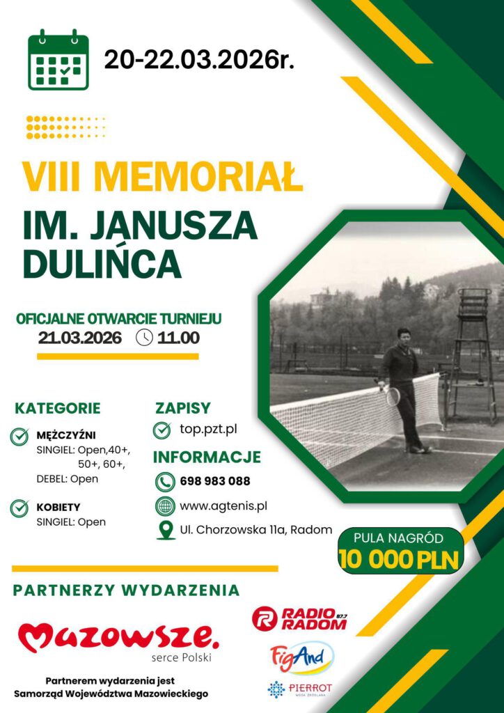 Po raz ósmy miłośnicy tenisa spotkają się w Radomiu, by uczcić pamięć wybitnego trenera i pasjonata tego sportu, Janusza Dulińca. Turniej, który od pierwszej edycji przyciąga czołowych amatorów z całej Polski, na stałe wpisał się w kalendarz sportowych wydarzeń w regionie