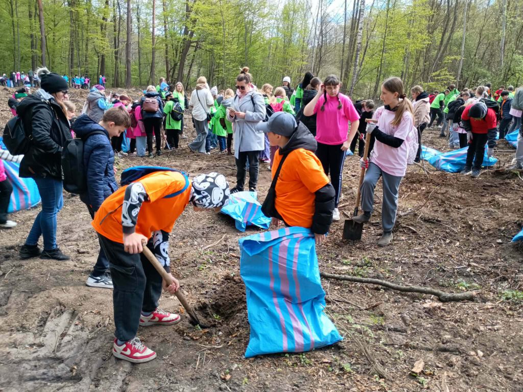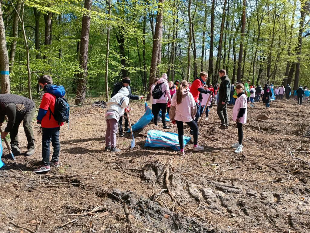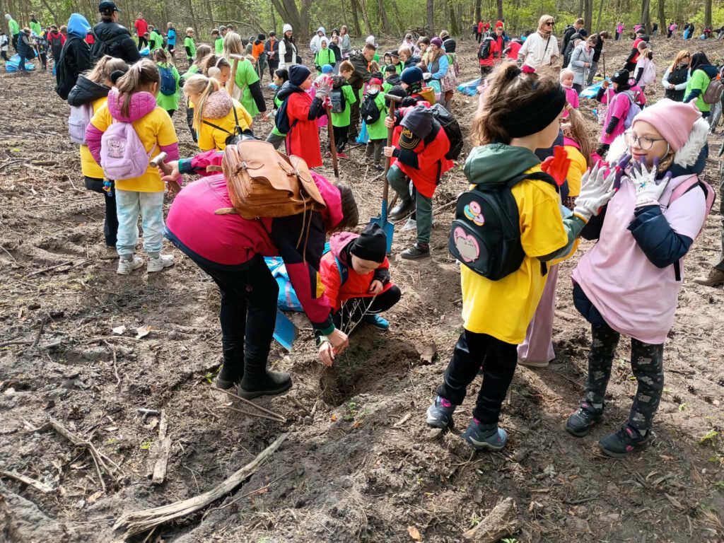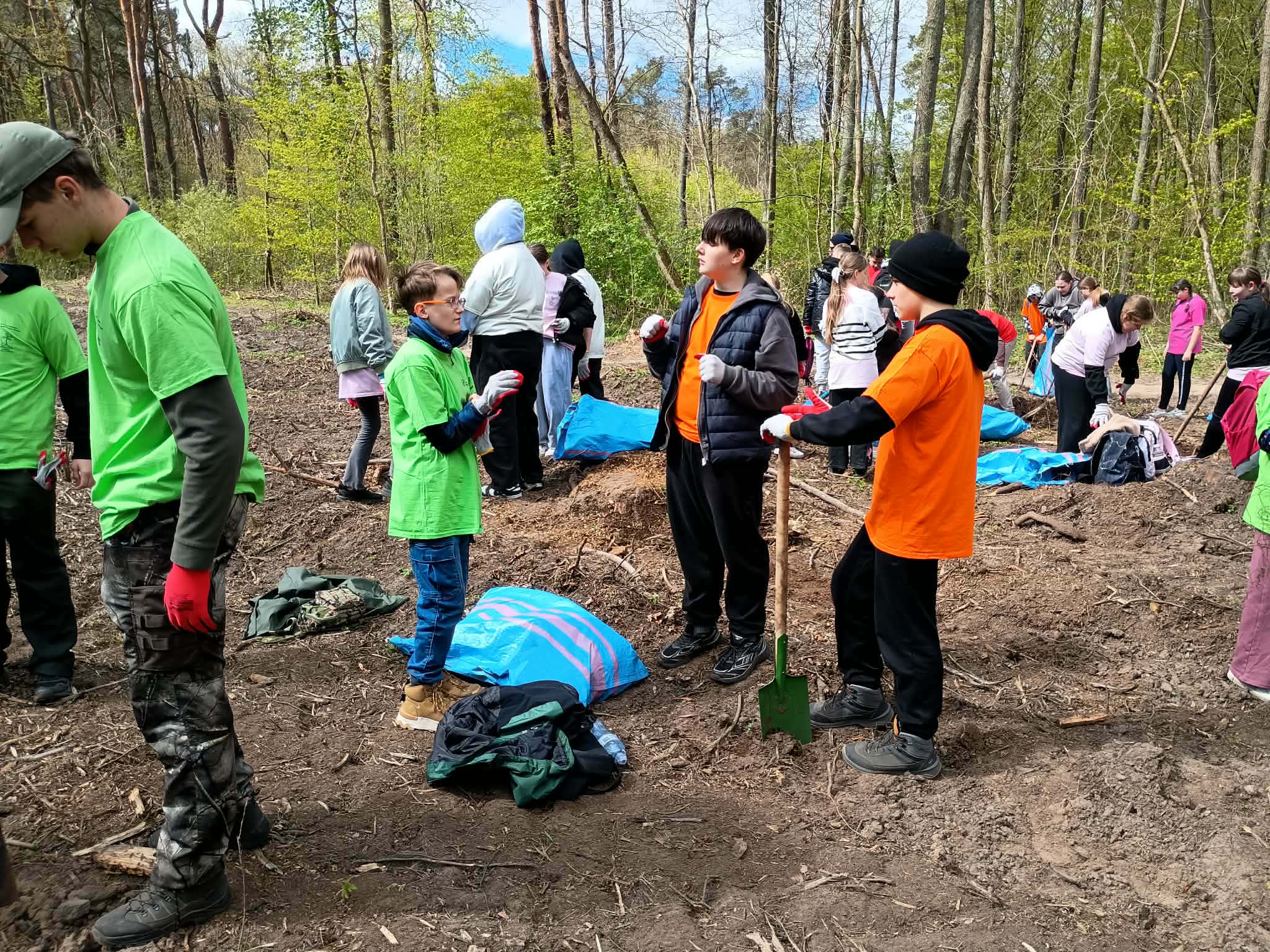 Kilkadziesiąt uczniów szkół podstawowych i ponadpodstawowych z Radomia i okolic zebrało się w leśnictwie Janiszew, aby wspólnymi siłami posadzić las.